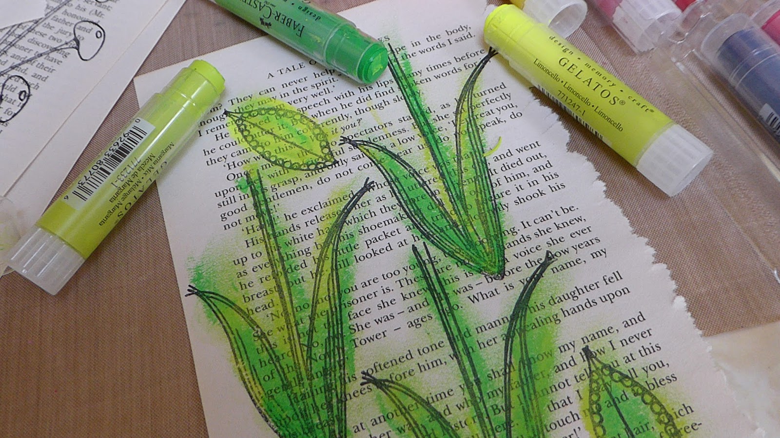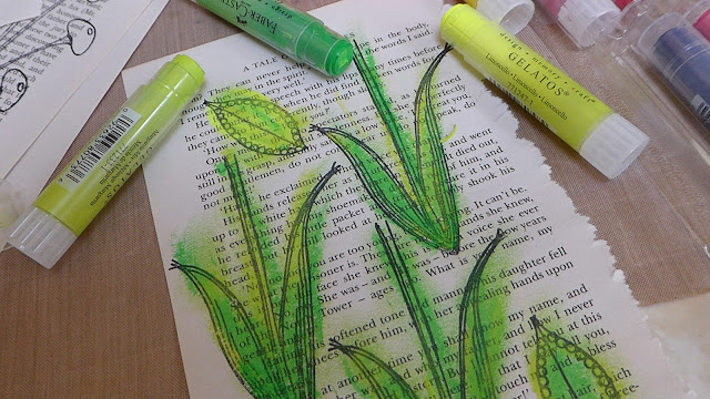 PaperArtsy #3 wax As suggested by Leandra in the intro video I dug out my gelatos and had fun colouring with them .