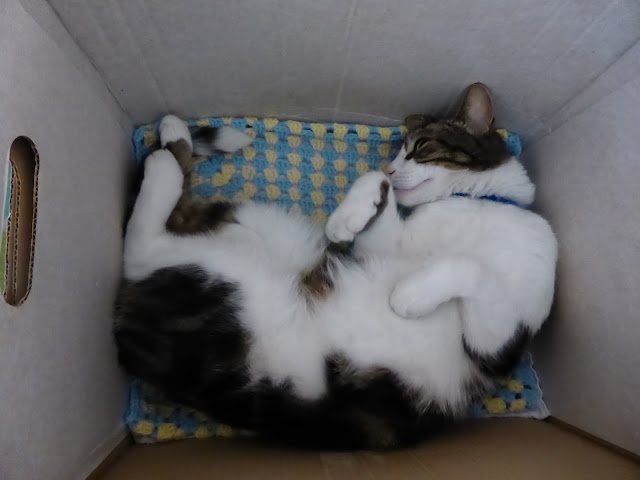 One thing all cats love are boxes and yes Billy has his own one where he often takes a cat nap when it's a bit chilly.