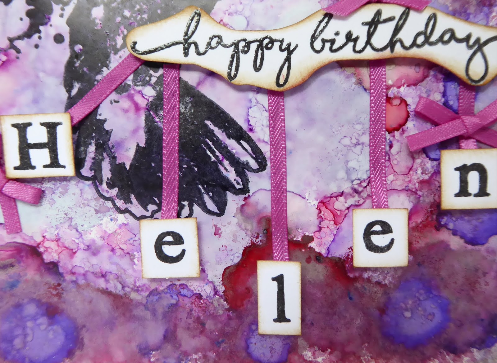 Yes none other than the lovely Mrs Visible Image aka Helen. Helen celebrated her special day last week. I made an alcohol ink background using lots of pinks and purples on Yupo paper.