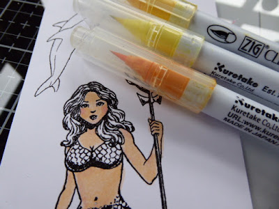 I stamped and coloured Miss Mermaid with Zig watercolour markers and cut her out