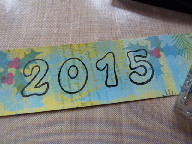 I then die cut some trees and stamped a very old Tim Holtz inspirational time sentiment and the Visible Image Happy new year and white embossed them.
