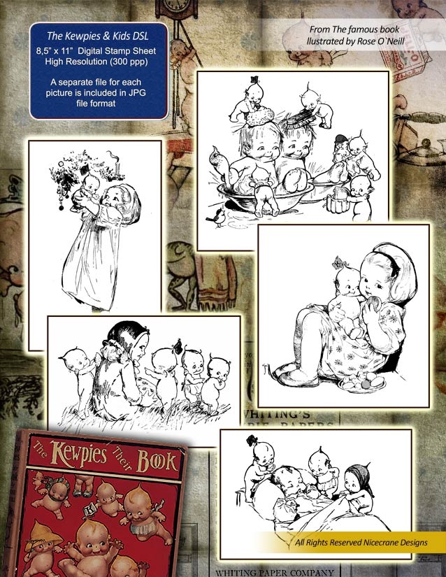 The main reason for my post today is that I am super excited today to be able to offer a Freebie from my friend Ignacio, of Nicecrane Designs to all my followers. Ignacio and I met through my interest in his Kewpie images. I was delighted to be invited to join his Design Team, as a permanent Guest Designer, last year. These images are so sweet and are also a favourite of my Mum, who remembers them from her childhood. I have used several of them on various projects.