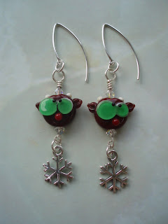 Here they are...I bought some pretty sterling silver snowflakes and wire wrapped them using Swarovski crystals and some unusual new ear wires.