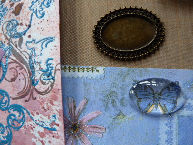 Here is my finished design, with some extra embellies added including a typewriter similar to the one we saw. The stamped butterflies are Visible image and the other stamps are Tim Holtz Stampers Anonymous.