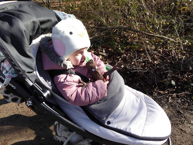 she already has her own stick man, which was a late Christmas pressie. He got tucked up warm in her buggy.