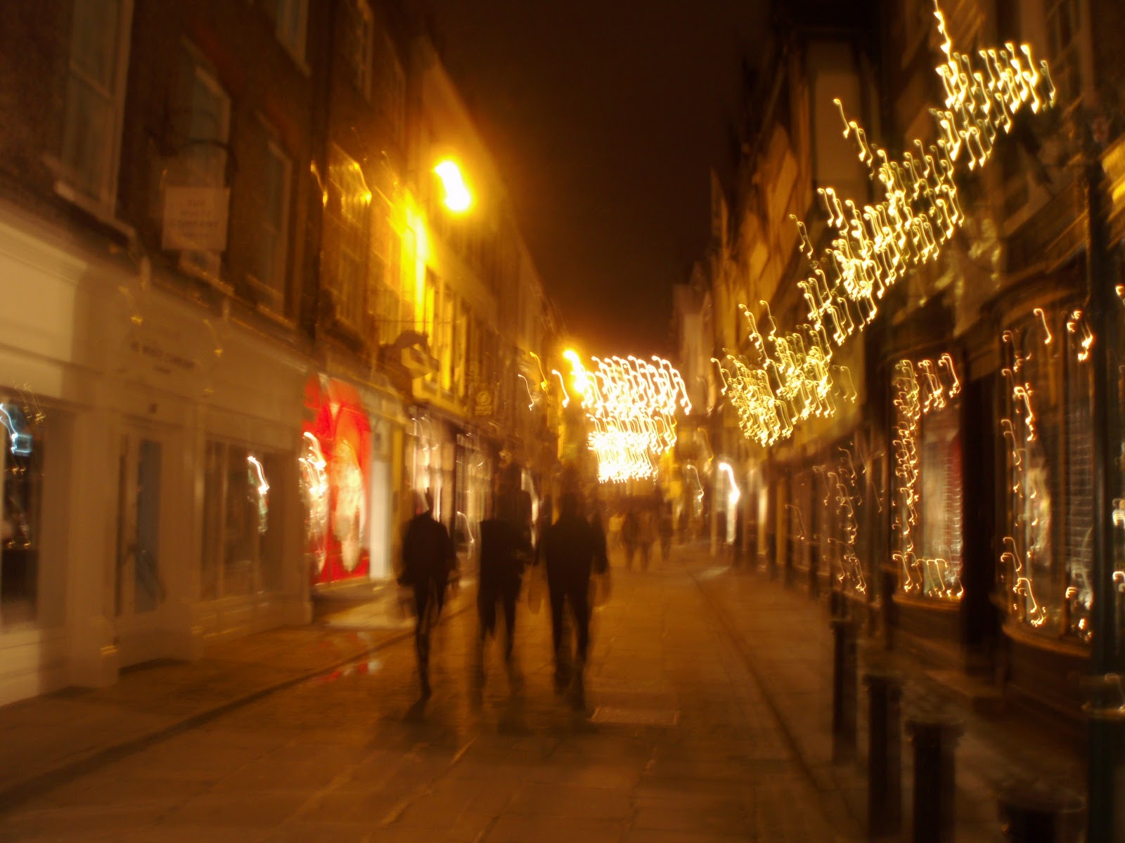 After we had finished our meal we decided that rather than head straight back to our hotel would would take a late night walk to walk off some of the food (and drink) we had indulged in. As you can imagine fuelled by this wonderful food and drink we positively glowed during our night time walk around the city centre. It was quite a cold night and we could see our breath visible in the air as we walked. Although all the shops were closed for the night they looked so beautiful with the Christmas lights shining. No these photos are not blurred due to my camera shake it's just that my camera needs holding still for a while to capture night time shots..honest! I actually find them very atmospheric
