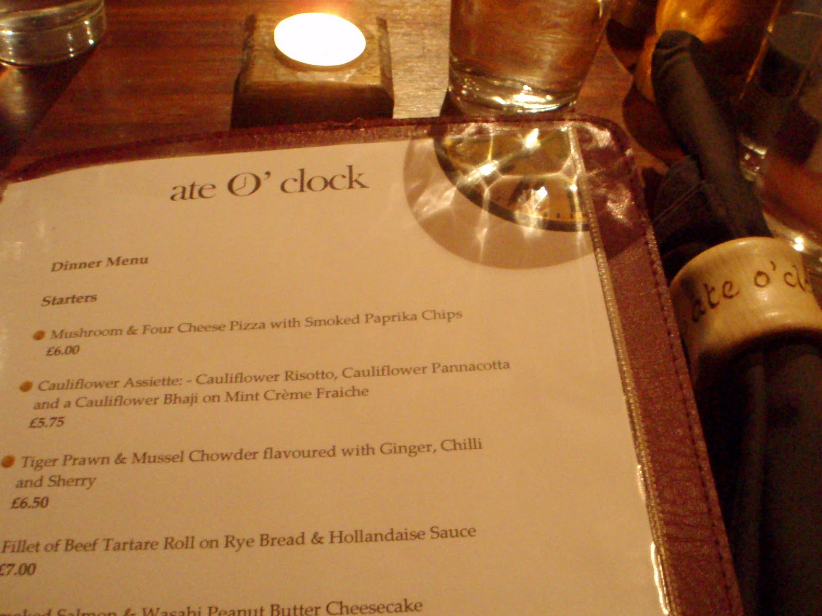 I always do a little research for a meal on the Friday night and came up with a restaurant with the amusing name of "Ate O'Clock". We arrived at (you can guess 8 o'clock!) and found a beautiful little restaurant set back down an alley way. If anyone ever goes to York I can really recommend it. Everything was first class, right from the menu..