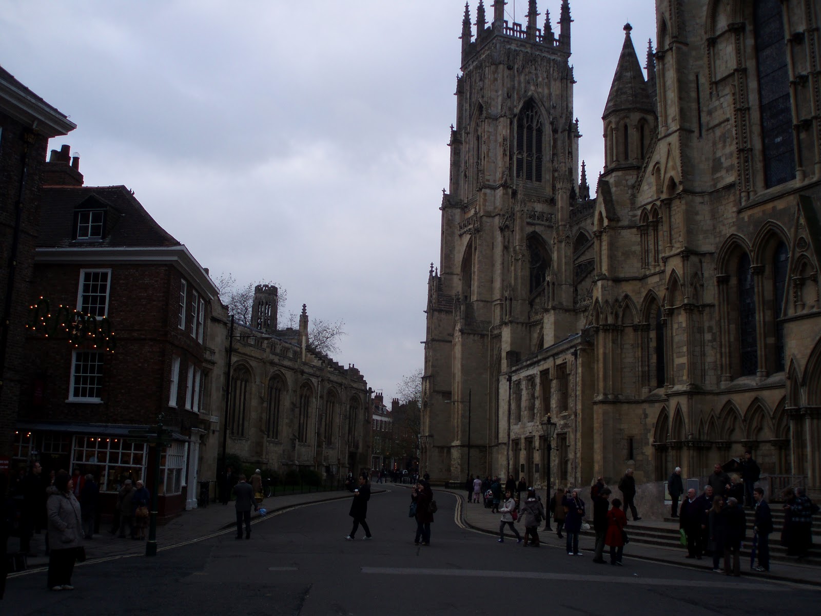 As you can imagine it was also an ideal opportunity to do some of our Christmas shopping as there are some very original shops in York, as well as the staple high streets shops which are found anywhere. The Shambles is a very famous street in York where originally all the butchers sold their meat. Nowadays there is a single sausage maker there but the old building are fascinating with their low doors and ceilings. The buildings nearly touch one another as they now lean forward so much with their old age.