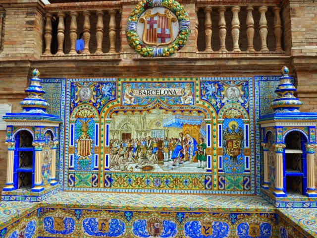 The second day we spent at the Plaza Espana. This was built for the 1929 for the American/Spanish exposition and showcased Spanish industry and technology. The walls are lined with tiles showing the provinces of Spain. The building has a wonderful Art Deco feel, one of my favourite art periods.