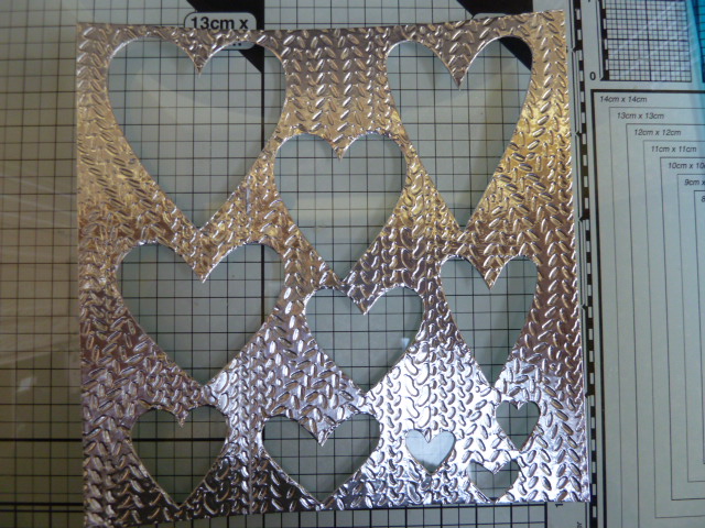 and a knitting embossing folder. I used my heart Tim Holtz Bigz die and cut out and removed all the hearts. These will be useful for other projects.