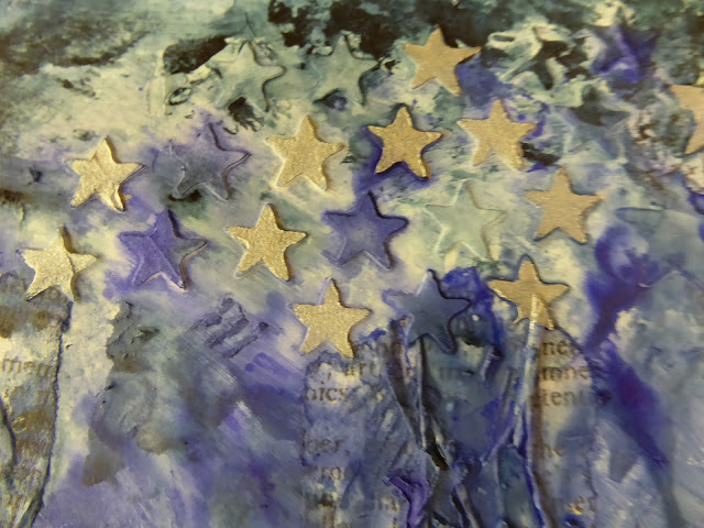 I have also decided to make some single pages in my art journal....It will fill it up far too quickly if I keep making double pages every time. I added some scrunched up tissue wrap and some texture paste stars through my TH stencil.