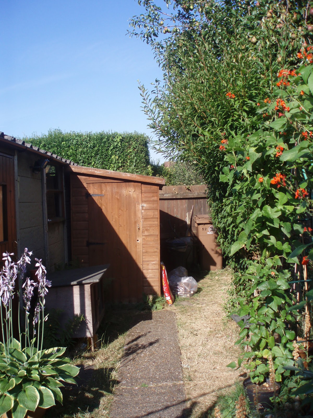 The sun has not even come up over the front of the house so there are long shadows cast...everywhere is still very quiet, despite it being the summer holidays.