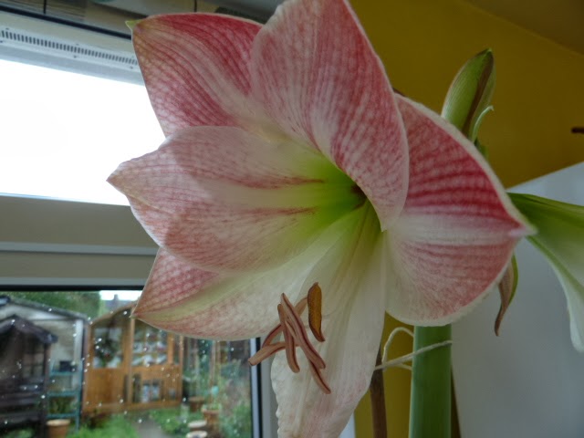 and eventually I had 4 magnificent trumpets of colour which stayed out for 2 weeks. I left the flowers to die back and as I went to pull them off I noticed that there were 2 more buds. So today I had these 2 bonus flowers to see, isn't nature amazing...and all this for the sum of £5. Good old M+S.