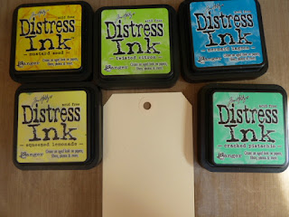 I decided to make 2 spring tags, using the same floral stamps but using distress inks for one and the new distress oxides for the other.