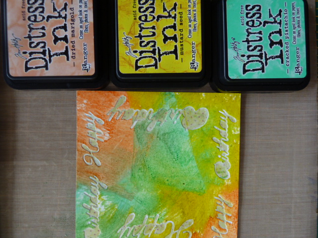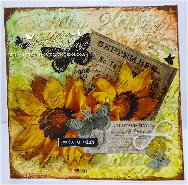 I then added my stamping using Archival inks. First I added some random text using Wendy Vecchi's lovely yellow version.