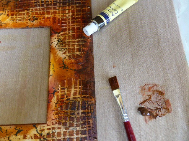 Next it was time to colour my frame and I used a mixture of distress ink and paints, acrylics and some bronze gilding paste.
