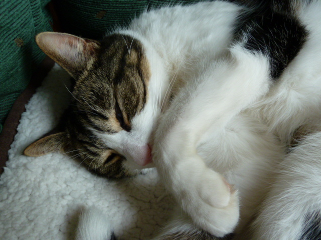 He was very sleepy the day I made my card so he just opened one eye to say hello.