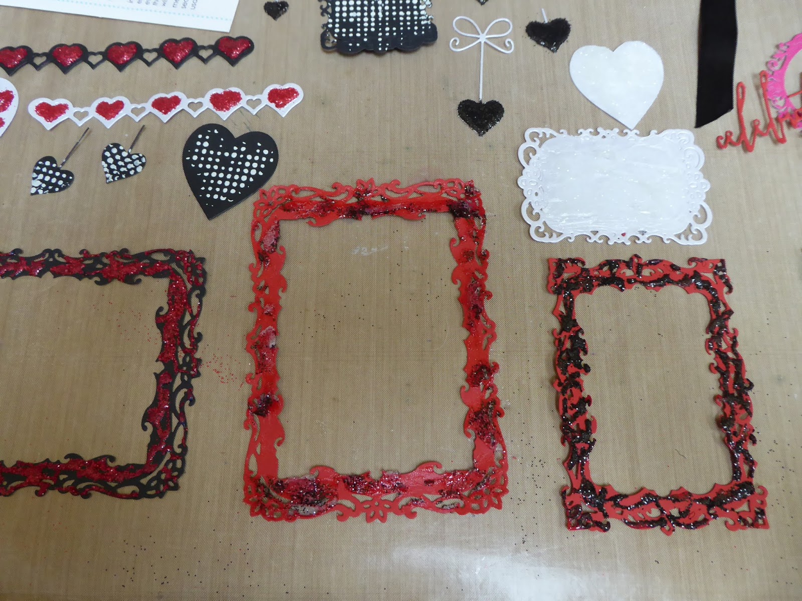 Next I die cut lots of frames and embellies and added glitter and textures to them.