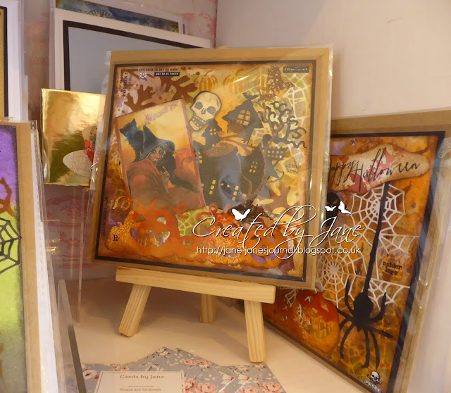 I thought that you would like to see my current display of cards which are for sale. I made a Halloween card last week which quickly sold so I made 3 more which I took down with me.